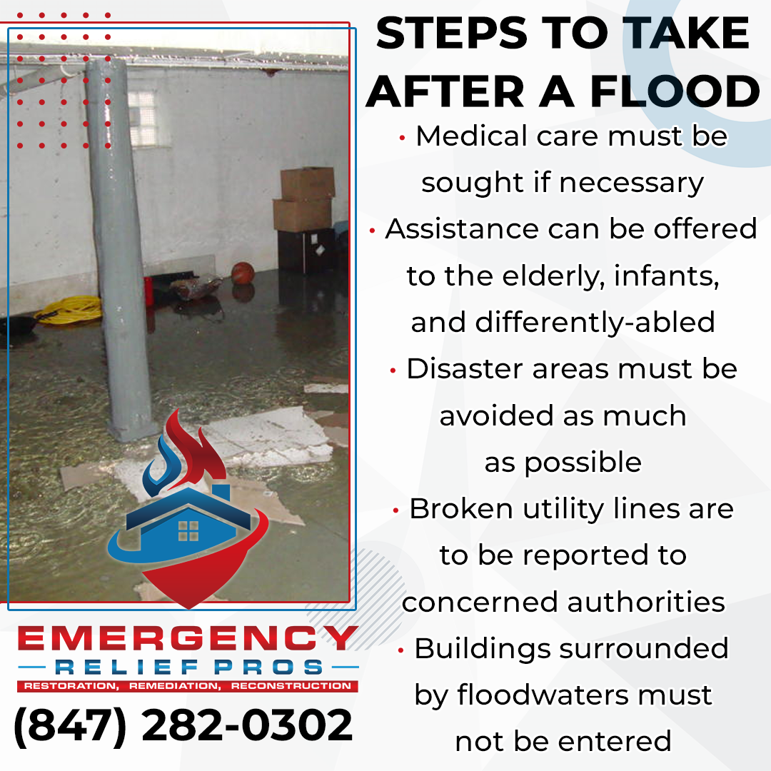 The above are just some general guidelines to follow after a flood. After a storm, it is best to contact a professional water damage restoration company that will handle the situation efficiently. Emergency Relief Pros Restoration Remediation Reconstruction is one of the best choices for emergency flood damage restoration in Cary, Illinois. They are flood damage experts that can be contacted 24/7 for restoration work at the phone number (847) 282-0302 or email claims@emergencyreliefpros.com.
